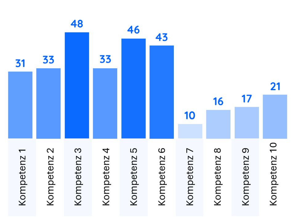 Erhalten Sie Statistiken und Key Insights zur Performance über XX verschiedene Kompetenzen hinweg