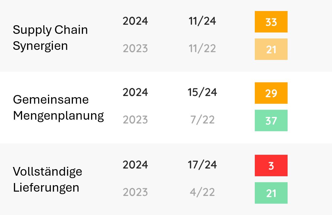 Verstehen Sie, wie effizient Ihre Supply Chain im Branchenvergleich arbeitet – und wo Sie gegen Wettbewerber aufholen müssen.