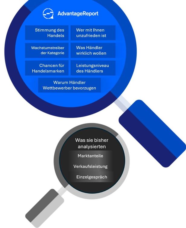 Ihre Wettbewerber wissen bereits, was Händler von ihnen erwarten – wissen Sie es auch? Ohne Advantage Report trifft Ihr Team Entscheidungen im Blindflug.