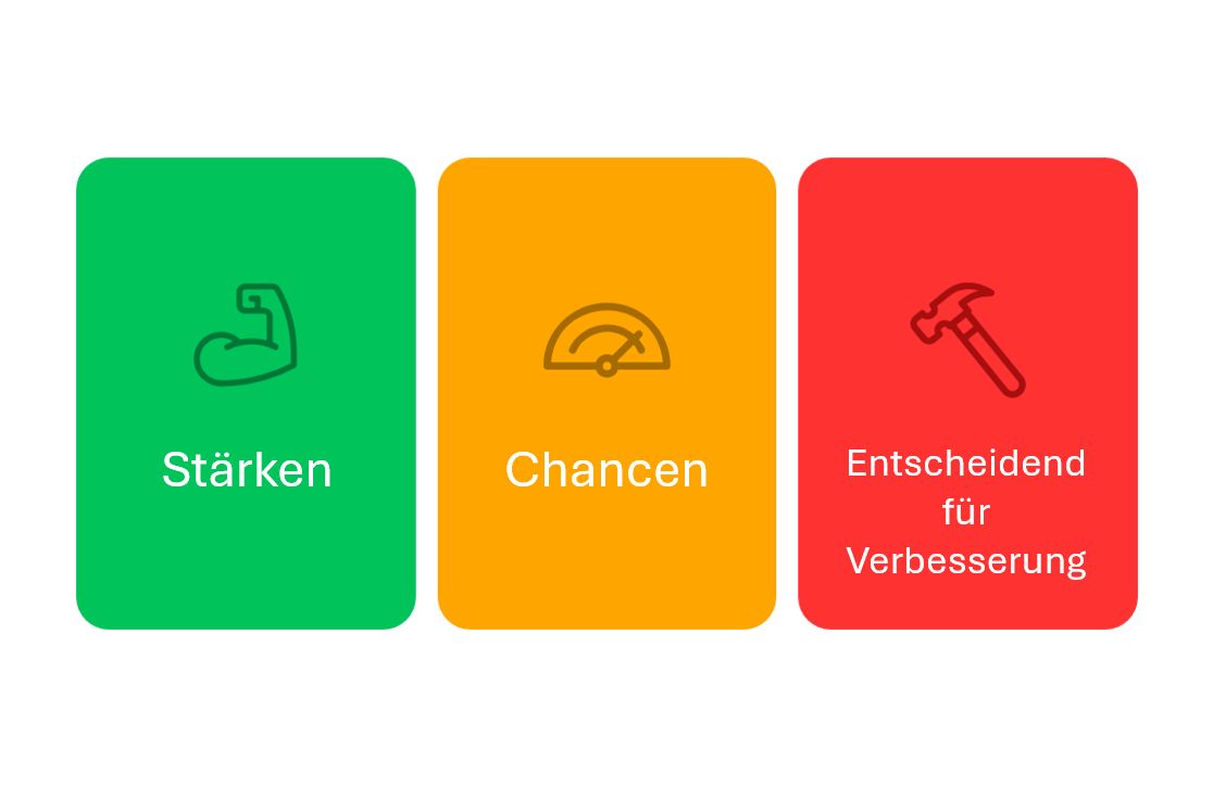 Sie bekommen einen detaillierten Bericht mit Bewertungen, Ranglisten, Zitaten aus Kommentaren und einer priorisierten Roadmap, mit der Sie Ihre Leistung verbessern können.