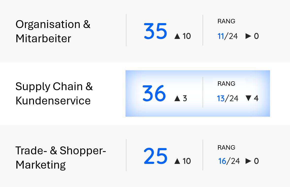 Der Advantage Report liefert Ihnen qualitatives und quantitatives Feedback von Händlern sowie Wettbewerbs-Benchmarking. Wenn Sie diese Erkenntnisse nutzen, um Lücken in Ihren Handelsbeziehungen auszumachen, können Sie unter anderem Verbesserungen bei Umsatz, Marge, Regalfläche, Effektivität von Promotionen, Effizienz der Supply Chain und mehr erzielen.